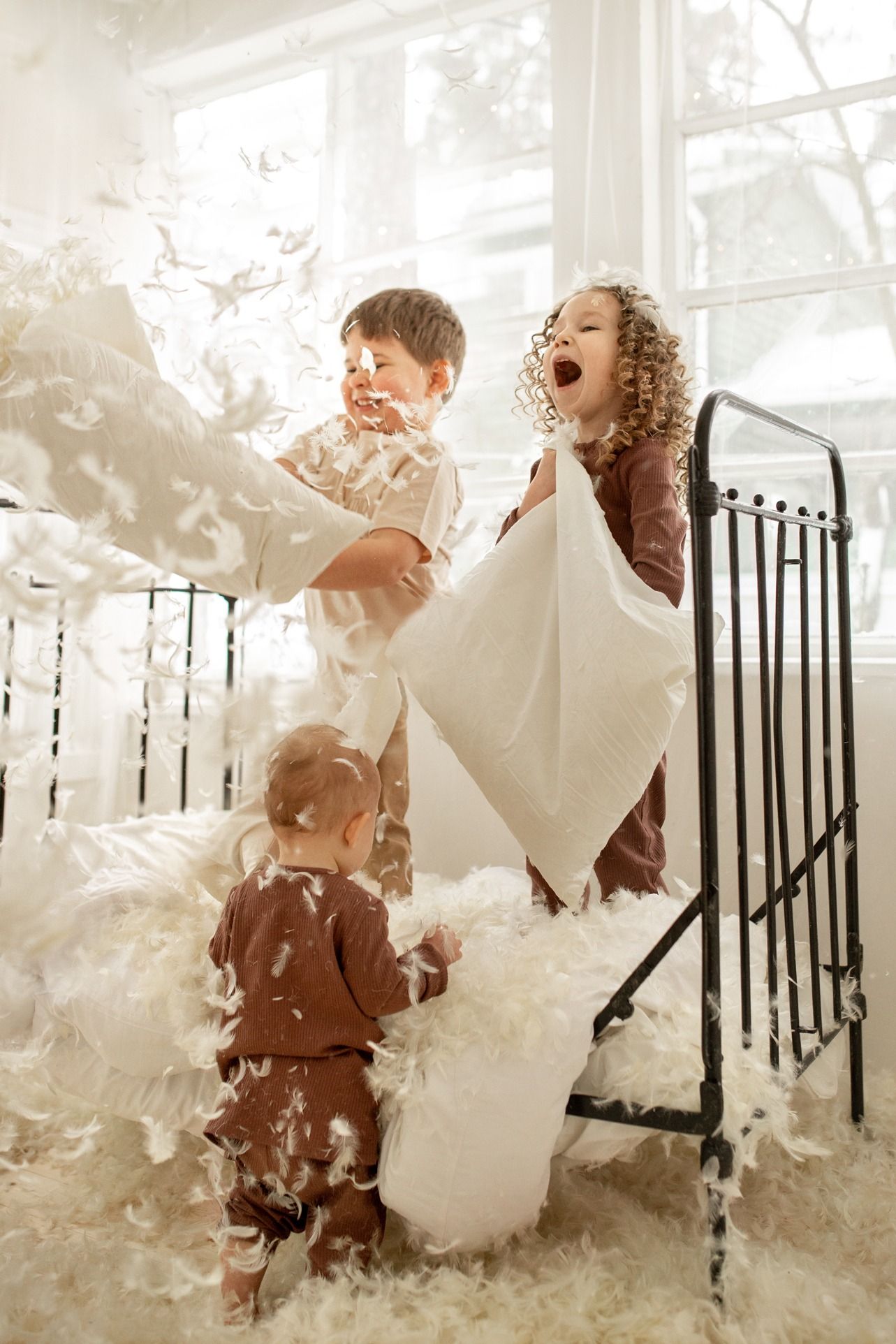 Саша, Кира и Ульяна бой подушками